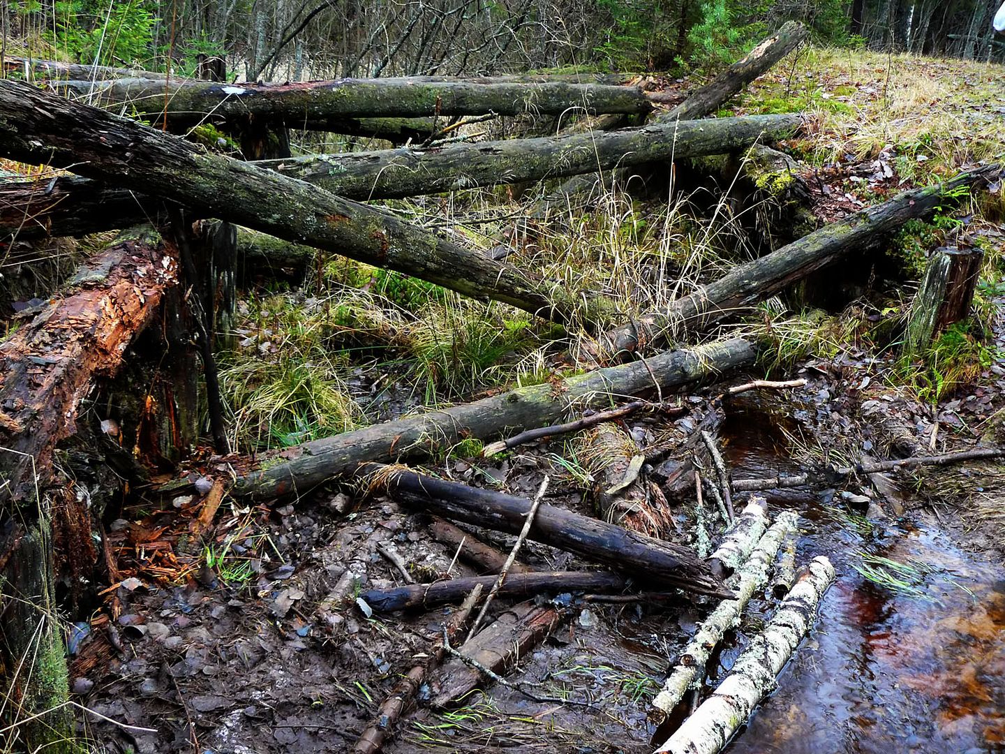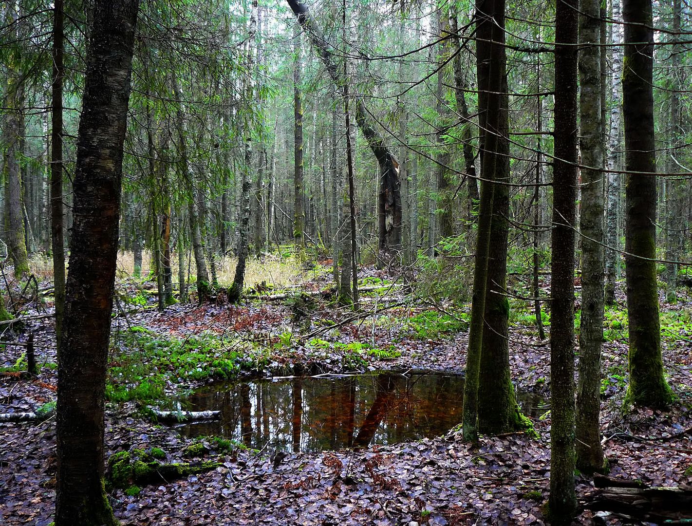 Впрочем, на мой взгляд, это хорошо, что мост разобран и дойти до истока Охты можно только пешком. Тем более, что под ногами у нас замечательная подстилка из мягчайшего мха: