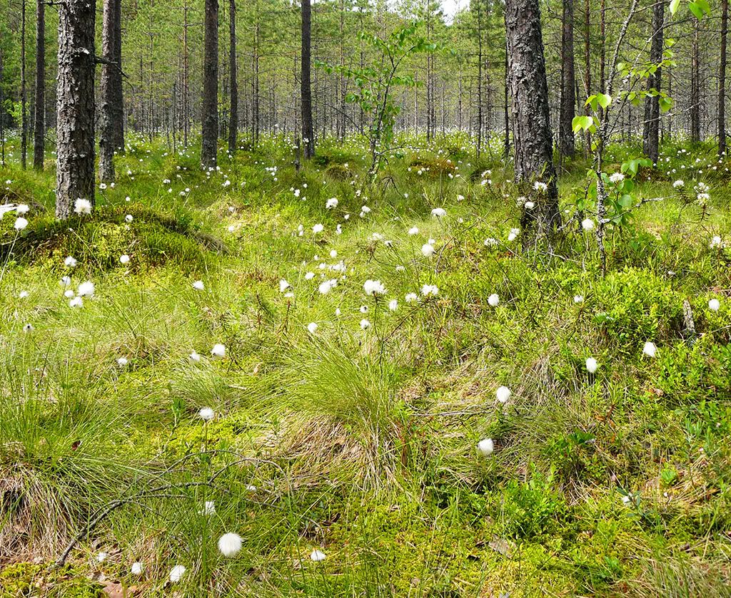 А теперь свернём с дороги на болото, летом благоухающее цветущим багульником и белое от пушицы, сегодня оно выглядит так: